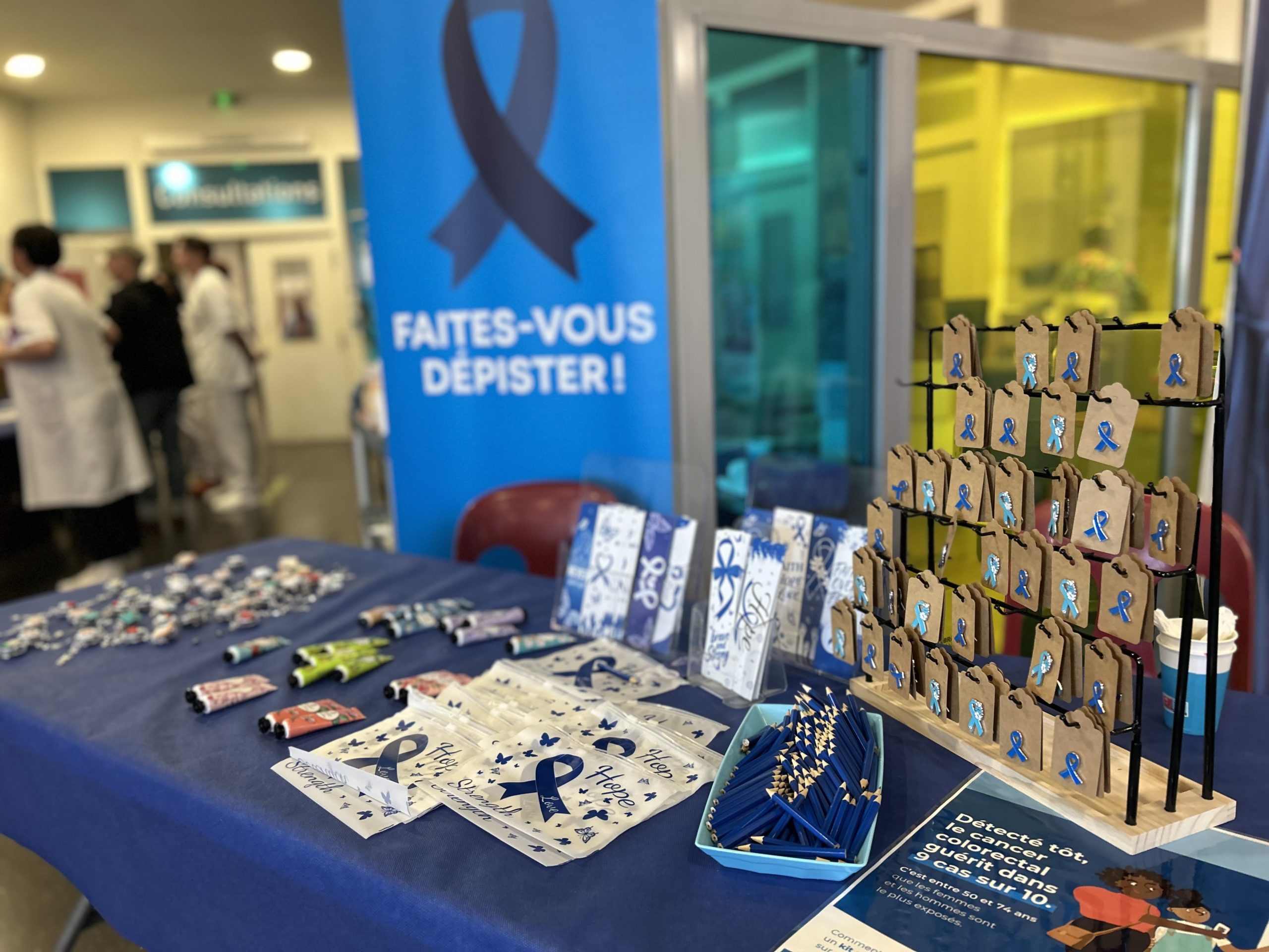 Aujourd’hui, 19 mars, notre équipe de la MIPPS était à la Clinique de la Clarence à Divion pour participer à l’opération de sensibilisation au dépistage du cancer colorectal – Mars Bleu organisée par Mme KUBICKI et Mme DUPONT toutes deux cadres de santé !
