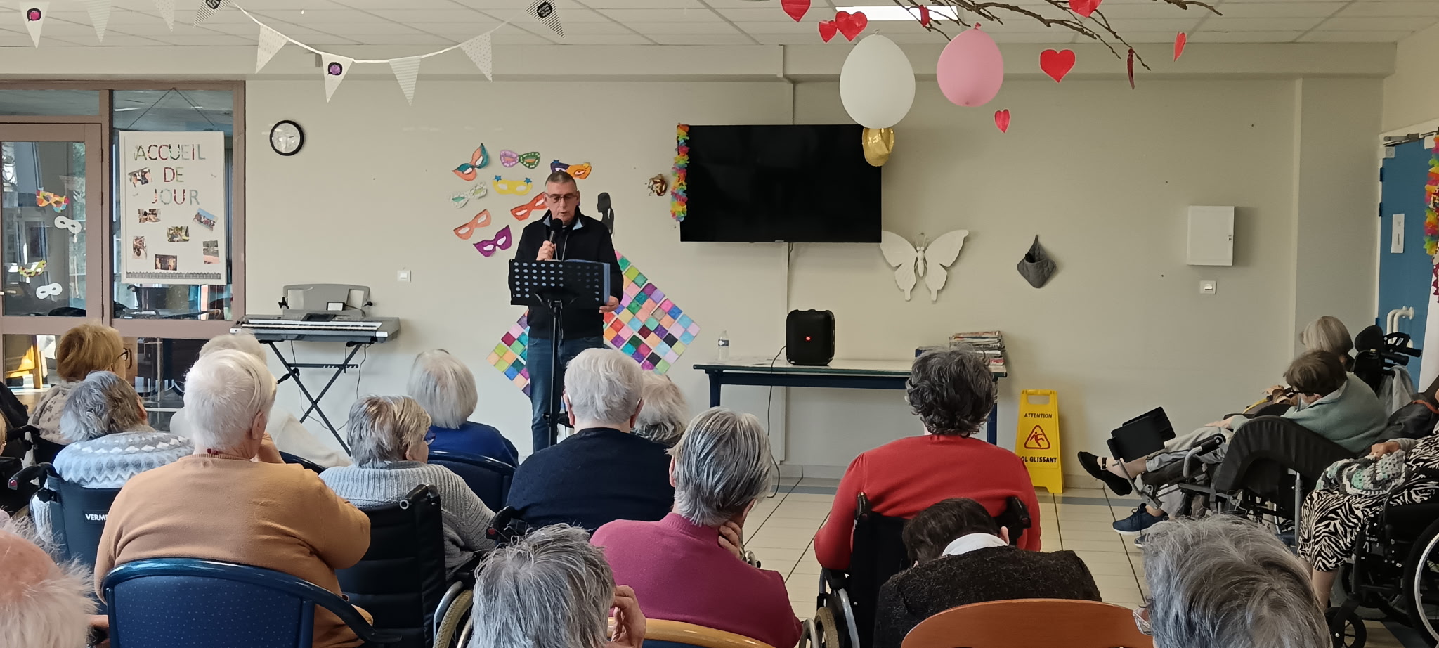 Mercredi dernier, la salle d’animation de notre EHPAD Elsa Triolet, Calonne-Ricouart était comble de nos résidents pour venir écouter, apprécier et applaudir les lectures des poèmes de M. Jacky DUMETZ.