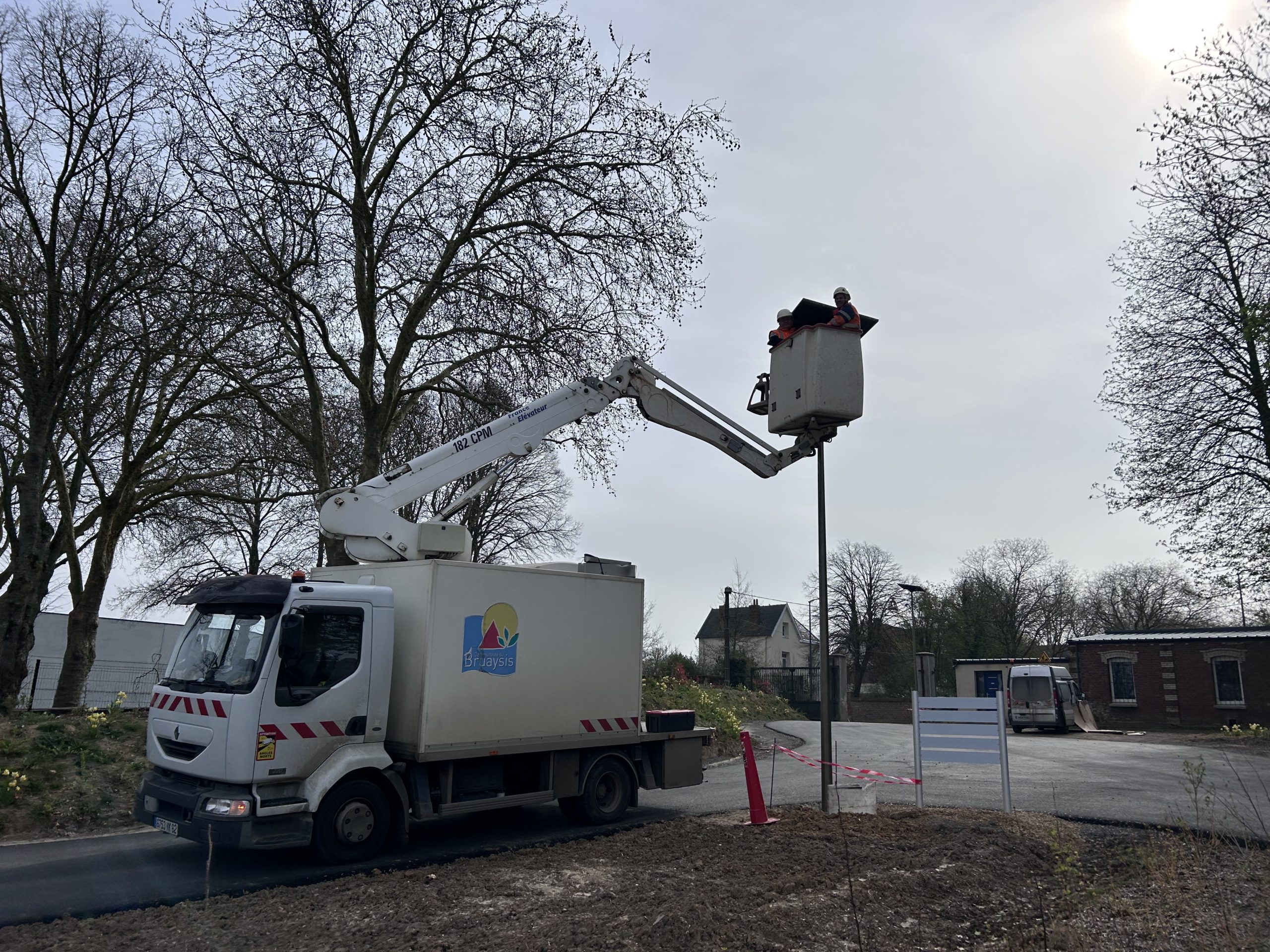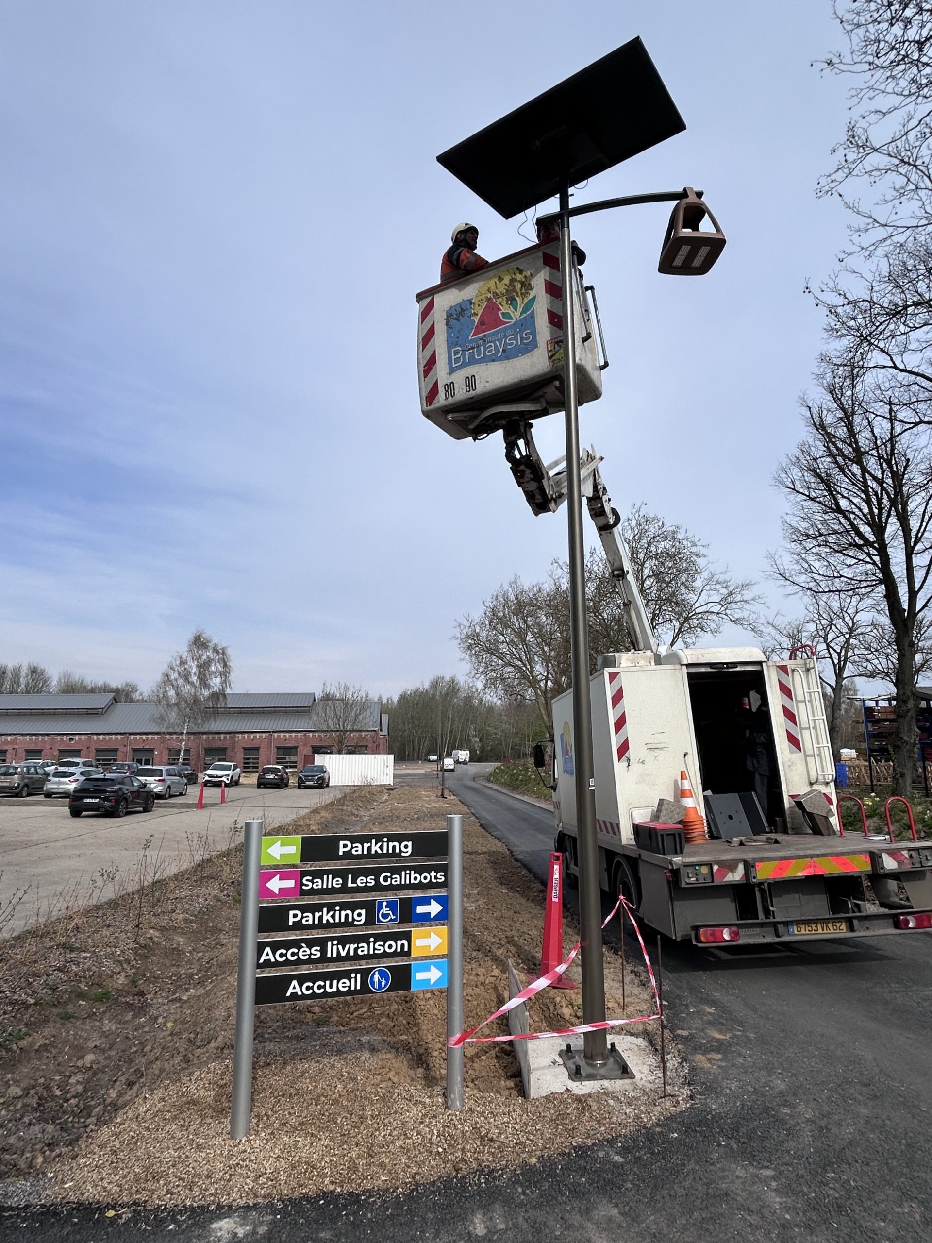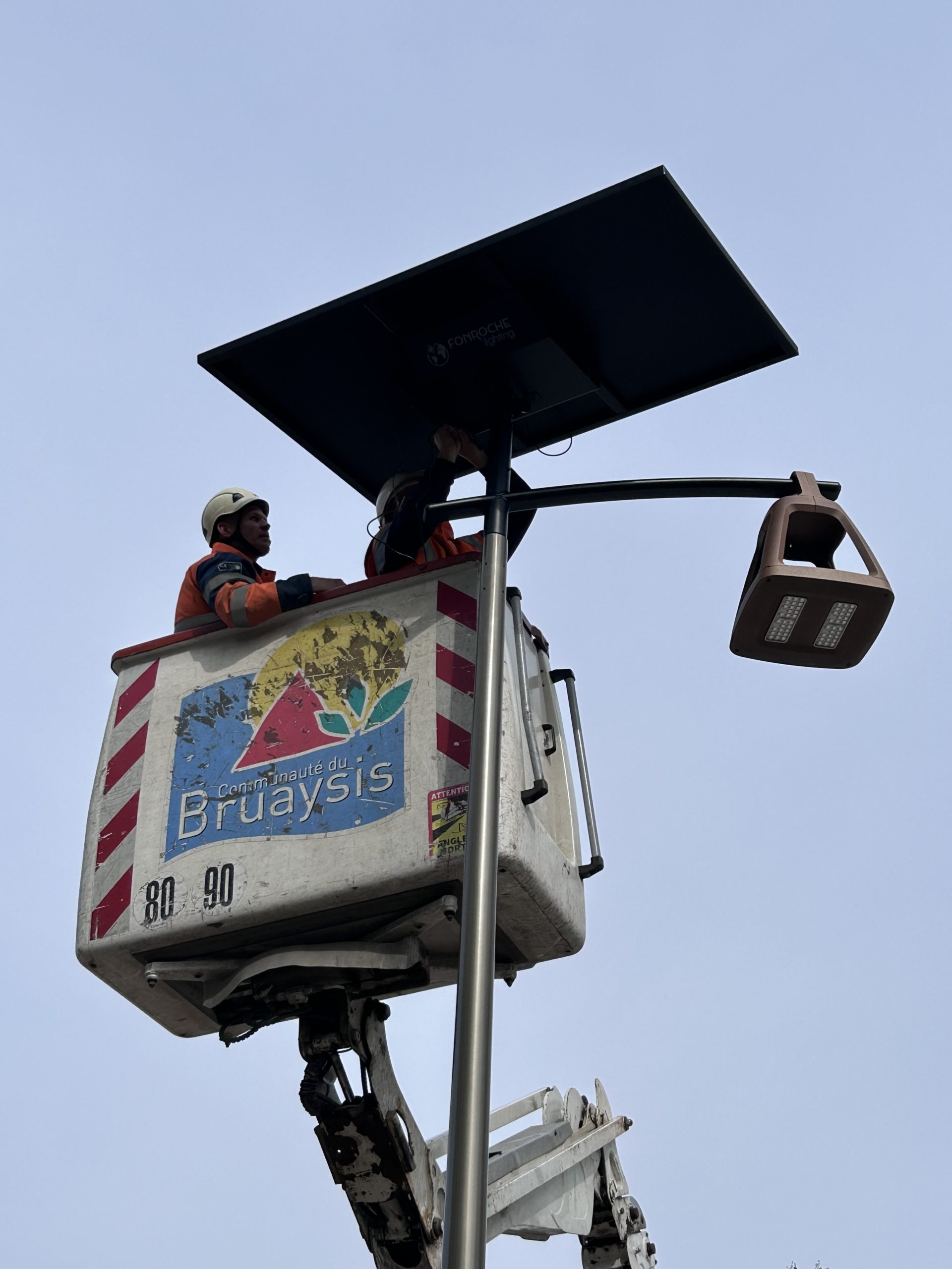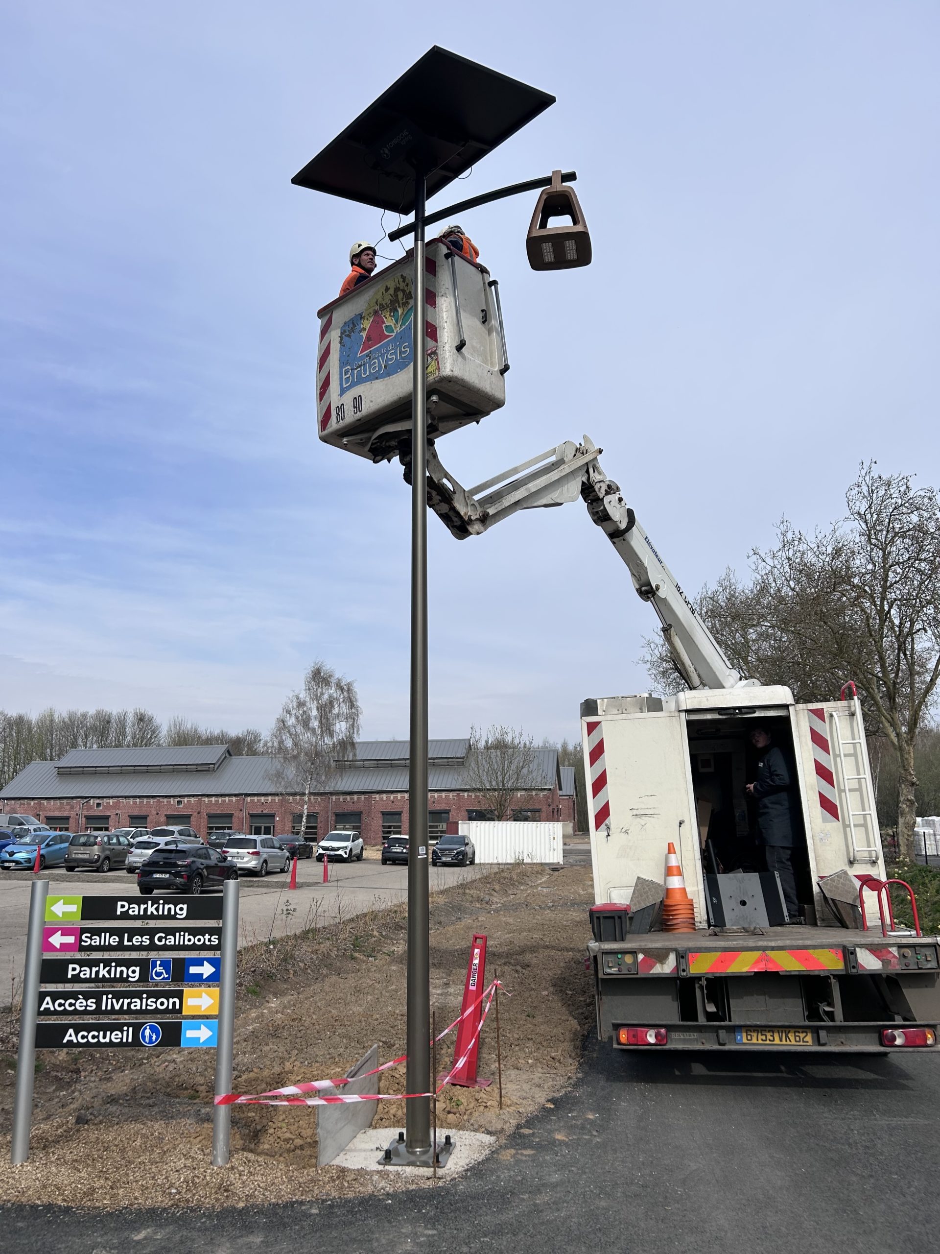 Retour en images sur l’installation de 5 mâts autonomes équipés de panneaux solaires.